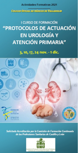 Curso presencial sobre Protocolos de Actuación en Urología y Atención Primaria, que se realizará en el salón de actos del Colegio Oficial de Médicos de Valladolid todos los miércoles de noviembre y el primero de diciembre en horario de 17 a 19 h.