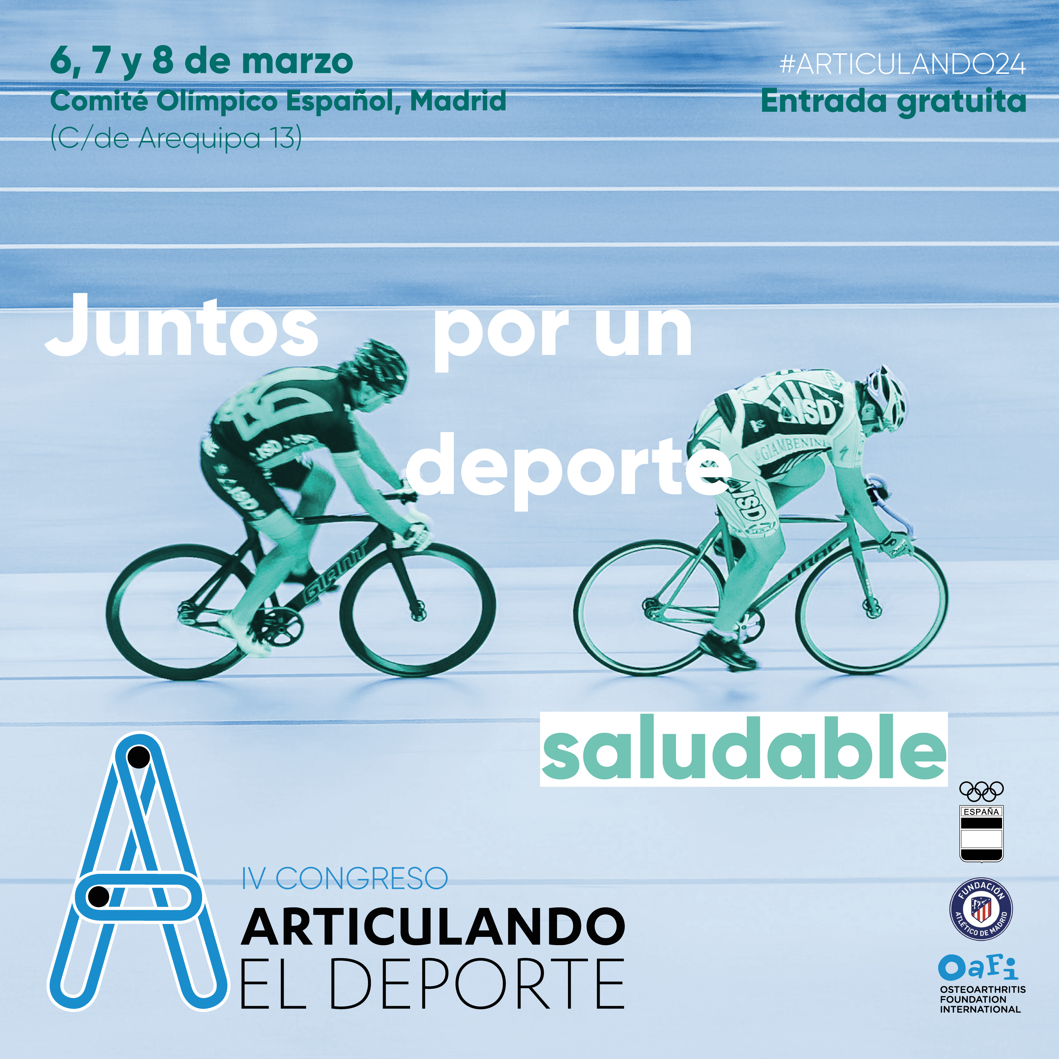 Los días 6, 7 y 8 de marzo se celebra el IV Congreso Articulando El Deporte en la sede del Comité Olímpico Español. Es un congreso dirigido a deportistas profesionales y amateurs, profesionales sanitarios, comunicadores, pacientes e industria, en el que el tema central es la práctica deportiva segura y el cuidado de la salud articular. La entrada es completamente gratuita.